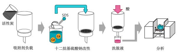 圖1:使用十二烷基硫酸鈉改性的活性炭進(jìn)行鎘預(yù)濃縮的實(shí)驗(yàn)程序。