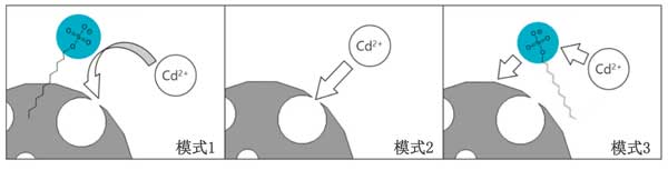 圖2:鎘離子被十二烷基硫酸鈉和活性炭吸引/吸收的反應(yīng)機(jī)理。