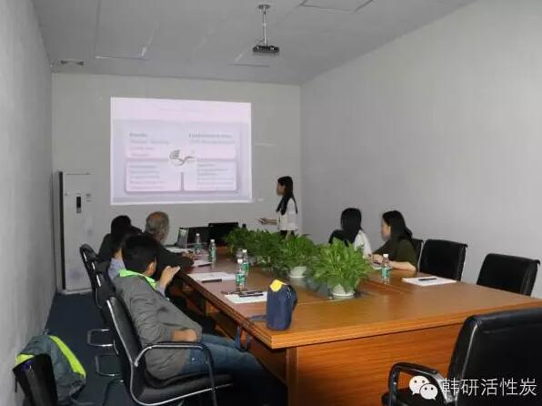 我司外貿總監Jane 帶領來訪的客戶們參觀了我司的證書展示區(各種認證及專利)、產品展示區、研發實驗室、蜂窩活性炭生產車間、椰殼活性炭生產車間等等,讓他們更加真真切切地感受到韓研強大的技術研發及生產能力。