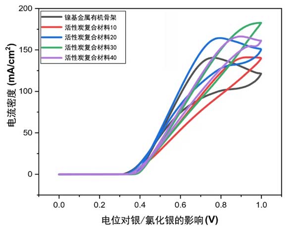 活性炭對甲醇氧化反應的電催化研究,鎳金屬框架及活性炭復合材料是通過成本較低且對環境有利的水熱法生產的。對合成的材料進行了電催化甲醇氧化反應測試。活性炭含量40的復合材料表現出較好性能,電流密度比較高還具有更低的過電位值和更高的穩定性。鎳金屬骨架與活性炭的非貴金屬復合材料使其成為一種價格低廉但在甲醇氧化電催化劑領域與鉑催化劑競爭的潛在候選者。高電流密度和低成本使其成為各種燃料電池應用中現有電催化劑的有前途的替代品。
