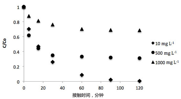 圖1:接觸時(shí)間對香草酸平衡濃度的影響。