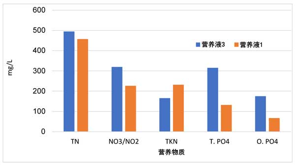 活性炭降低過量微量營養素濃度的結果表明,通過維持圖2a中給出的推薦值(RV),兩種處理一起可能能夠允許循環。數據顯示,經過兩次處理后,較高濃度的K和Ca降低到接近推薦值,允許處理過的溫室作物營養液再循環。這里可能要提到的是,在活性炭處理后,兩種營養液中的磷酸鹽含量都增加了,這歸因于吸附劑表面可能殘留一些游離磷化合物。將其自由洗滌、干燥并重復使用以獲得所需的結果。還使用RO處理營養液。結果表明,所有營養物質都顯著減少(>98%),這可以證實,如果營養液的處理應符合直接處置的規定,反滲透將是最佳選擇?紤]到反滲透,可以很容易地實現直接處置限制,并帶來經濟收益和環境效益。圖3顯示了營養液中營養成分的匯總,顯示TN和NO3/NO2等氮成分的濃度較高,而正磷酸鹽的濃度最低。否則,正磷酸鹽具有很強的反應性,并與參與環境轉化和新陳代謝的其他成分相互作用。出于這個原因,調節磷以保護湖中的藻類繁殖。