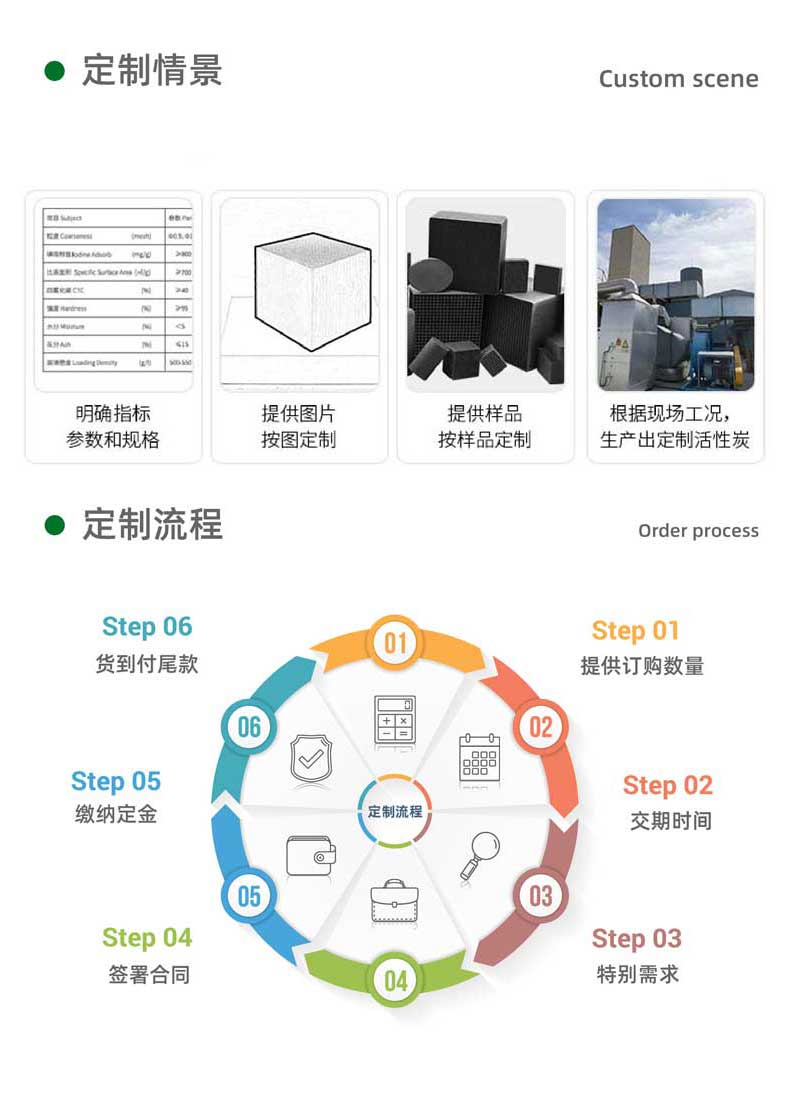 我廠出廠的蜂窩活性炭主要原料是采用,高級煤質活性炭粉、高碘值椰殼活性炭粉、超強脫色木質活性炭粉,目前國內市場大多數都是高級煤質活性炭粉制造成蜂窩形狀的活性炭,所以被人們稱為蜂窩狀活性炭。